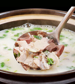 单县羊肉汤,属于鲁西南山东菏泽市汉族传统名吃,以其“色白似奶,水脂交融,质地纯净,鲜而不膻,香而不腻,烂而不黏”的独特风格载入中华名食谱,以汤入谱的只有单县羊肉汤,被国人称为“中华第一汤”。